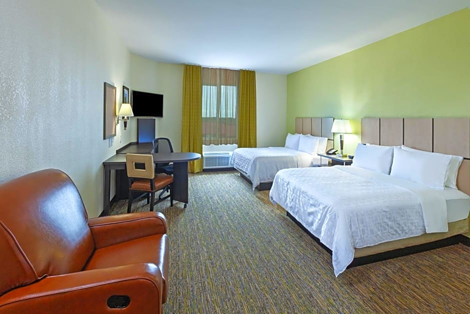 1 Queen Studio Suite Full Kitchen is 291 square feet and includes a queen-size bed 150-154 width.